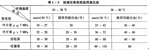 一假情況,按液壓泵類型選用液壓油,如表1-3所示。當然,也可鎖液壓元件產品說明書中推薦的牌號選用液壓油。